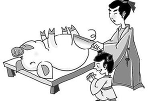 曾子的妻子要去市集,兒子哭鬧著要跟著去。曾妻便哄兒子說:“你就留在家里玩,等我回來后,我就殺豬給你吃。”當(dāng)妻子從集市回來,看見曾子準(zhǔn)備殺豬。妻子連忙阻止說:“我只是跟孩子說著玩的。”曾子說:“不能跟小孩子開玩笑。孩子年紀(jì)幼小,不懂知識,會模仿父母的行為,聽從父母的教導(dǎo)。今天你欺騙他,就等于教他學(xué)你那樣騙人。母親欺騙自己的孩子,孩子就不會相信自己的母親。”于是,曾子殺了那頭豬,并煮了豬肉給孩子吃。